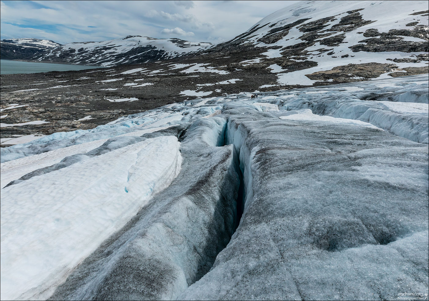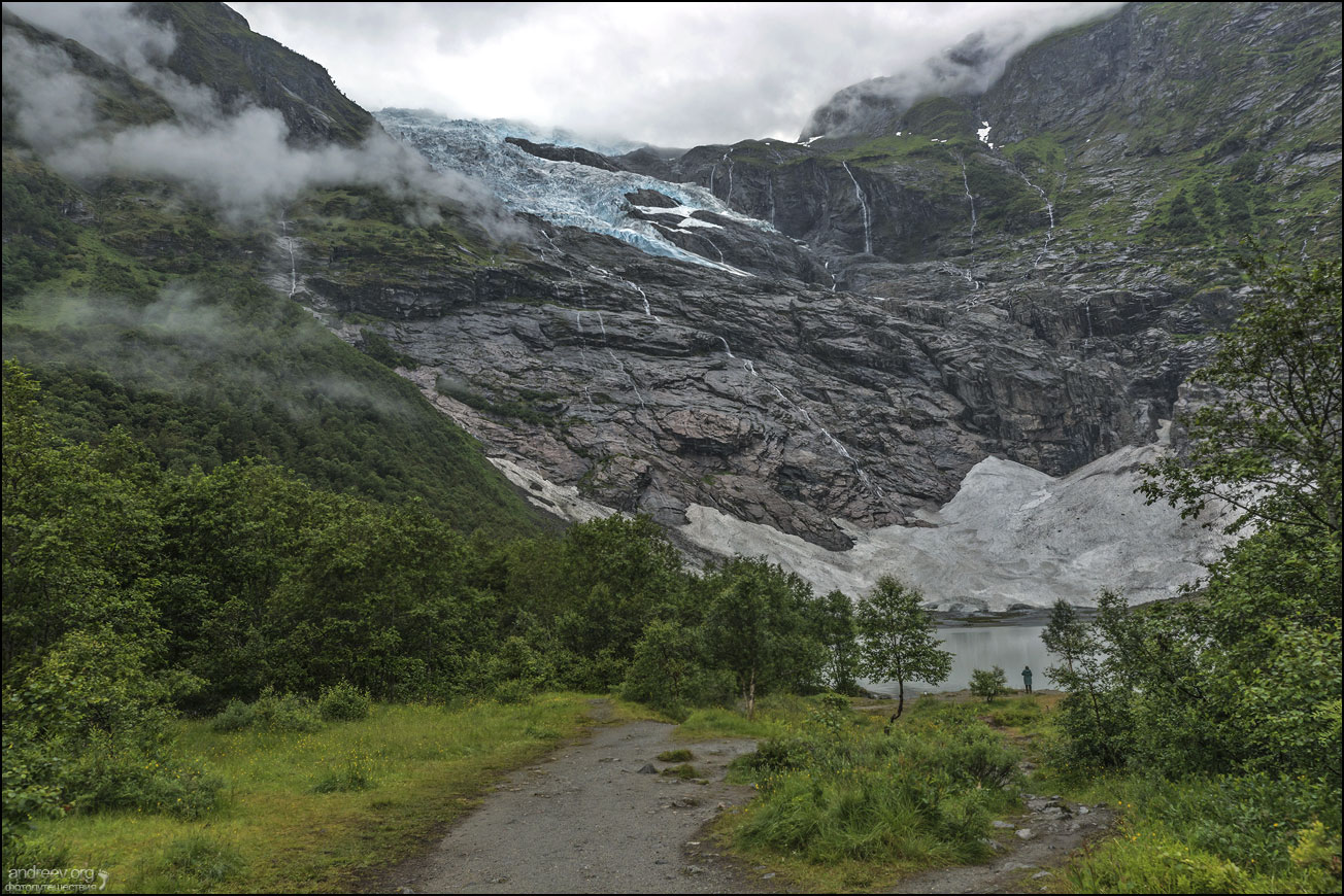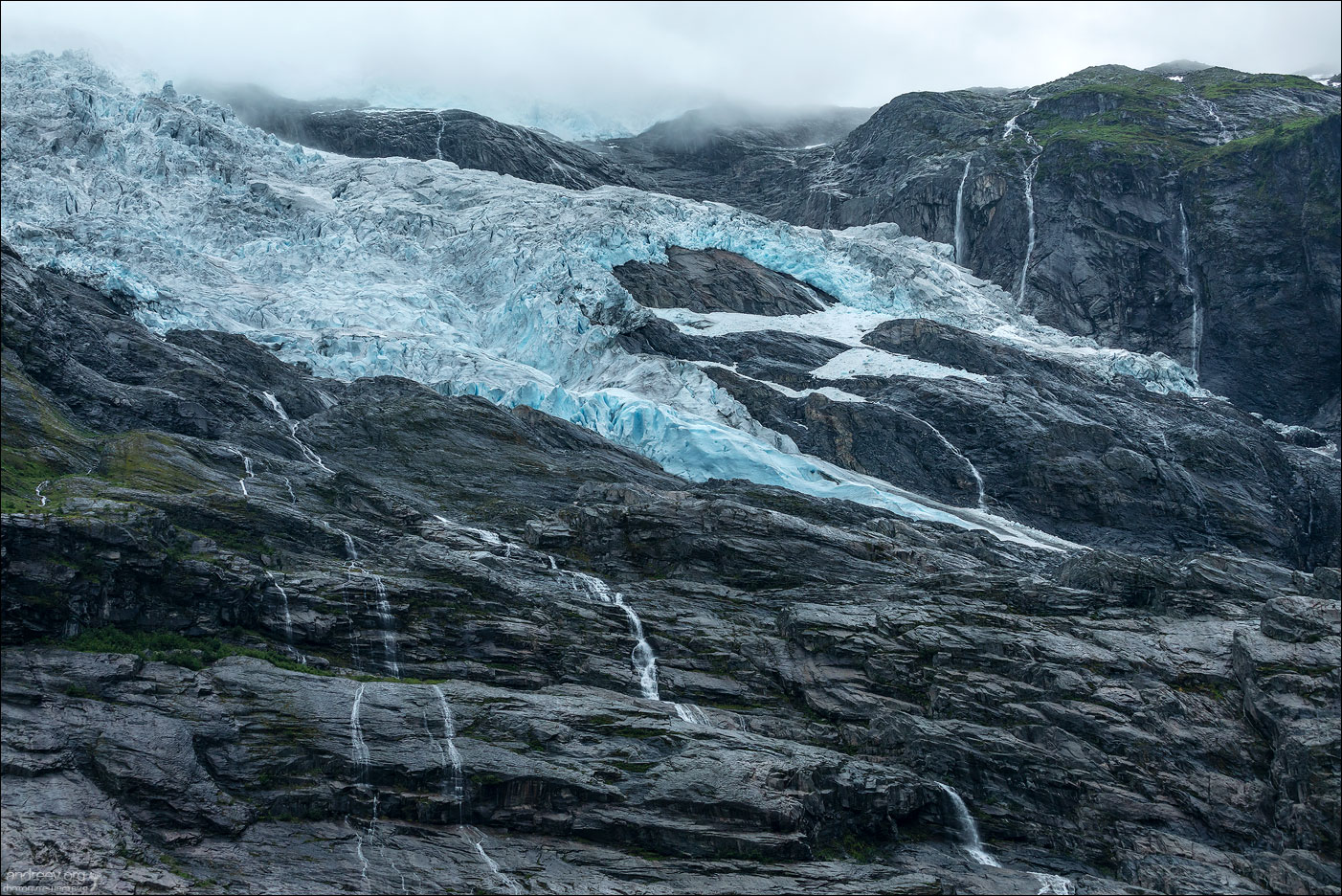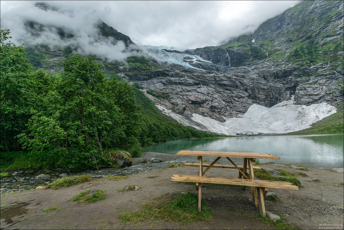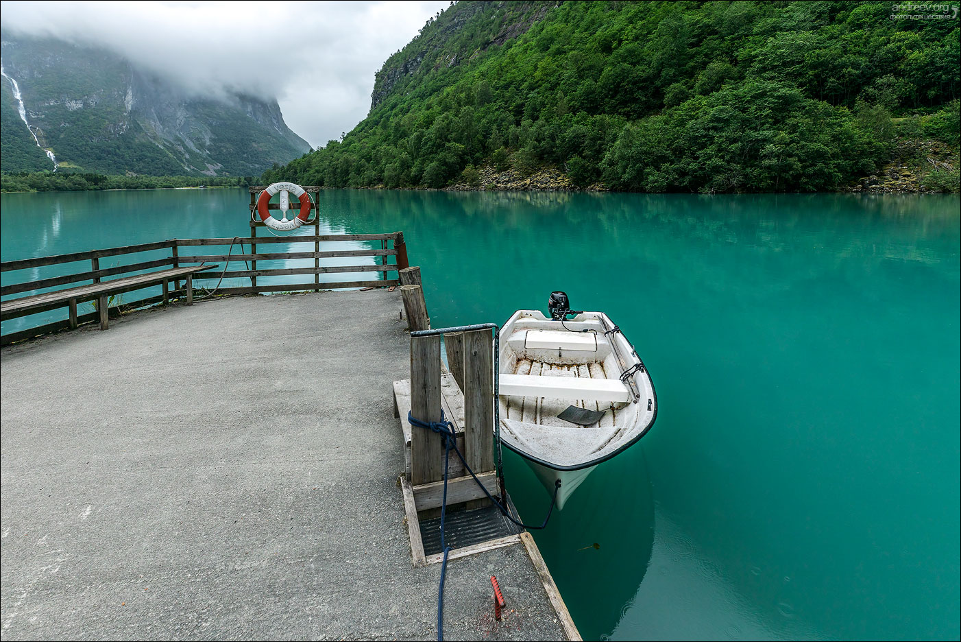 Фотографии из Национального парка Юстедалсбреен: каякинг по ледниковому озеру Styggevatnet с последующим подъёмом на ледник в “кошках”, бирюзовое озеро Lovatnet, и цветочный оазис в деревне Solvorn.