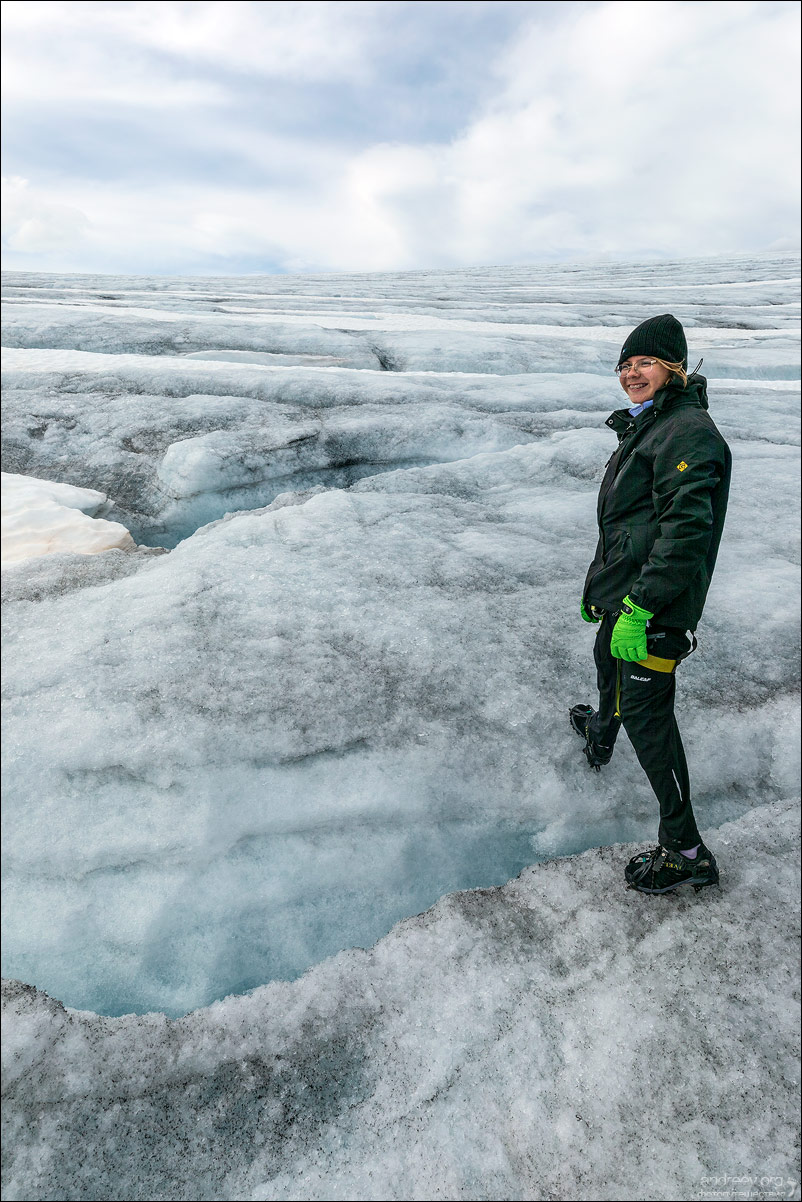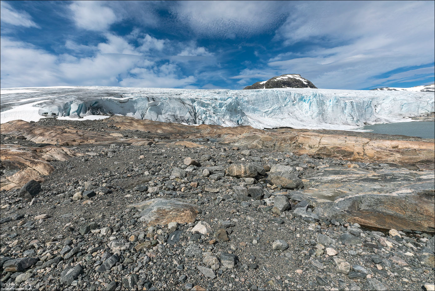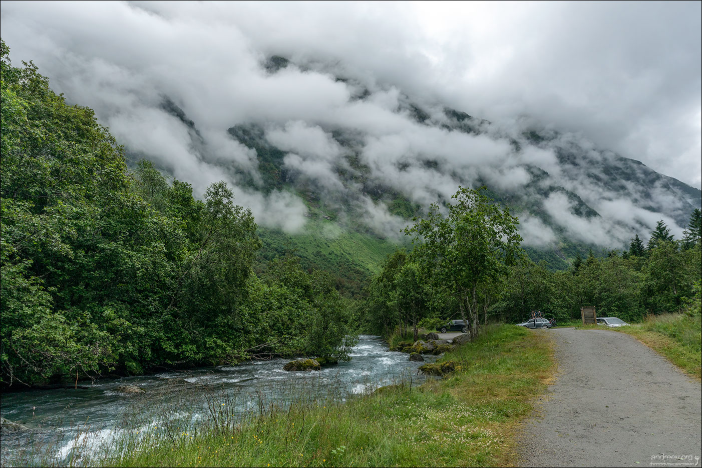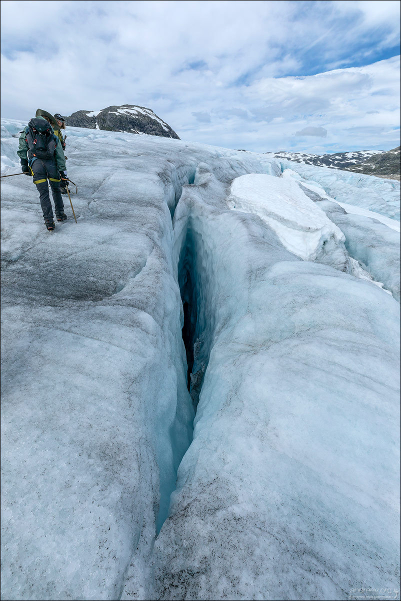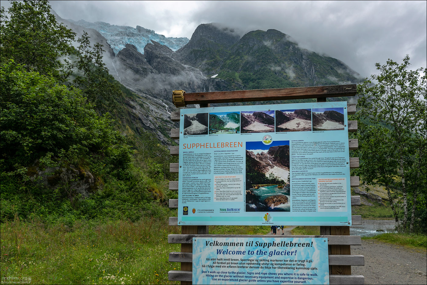 Фотографии из Национального парка Юстедалсбреен: каякинг по ледниковому озеру Styggevatnet с последующим подъёмом на ледник в “кошках”, бирюзовое озеро Lovatnet, и цветочный оазис в деревне Solvorn.