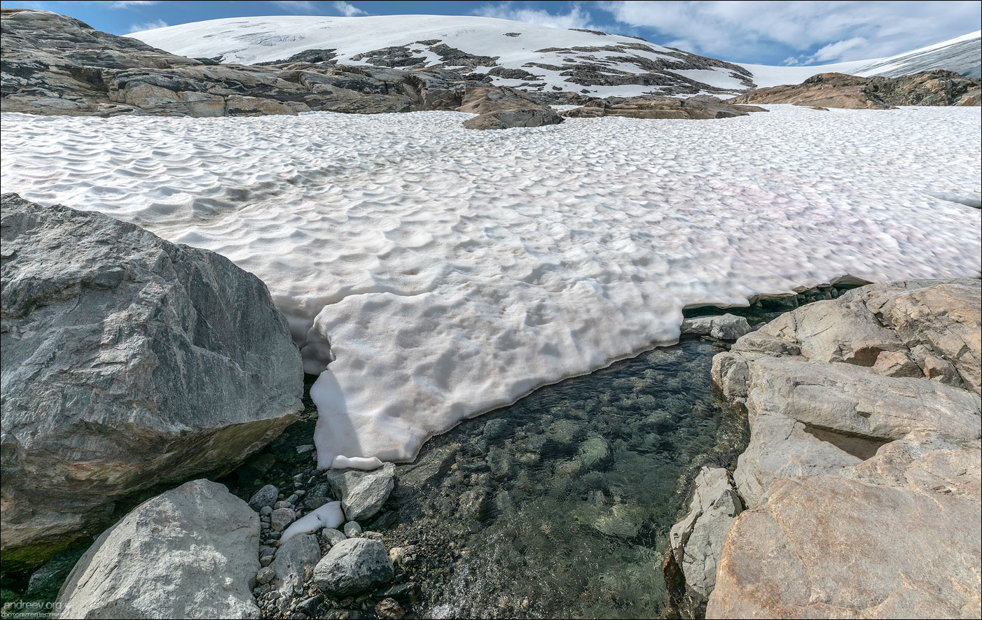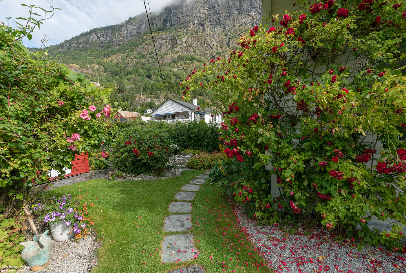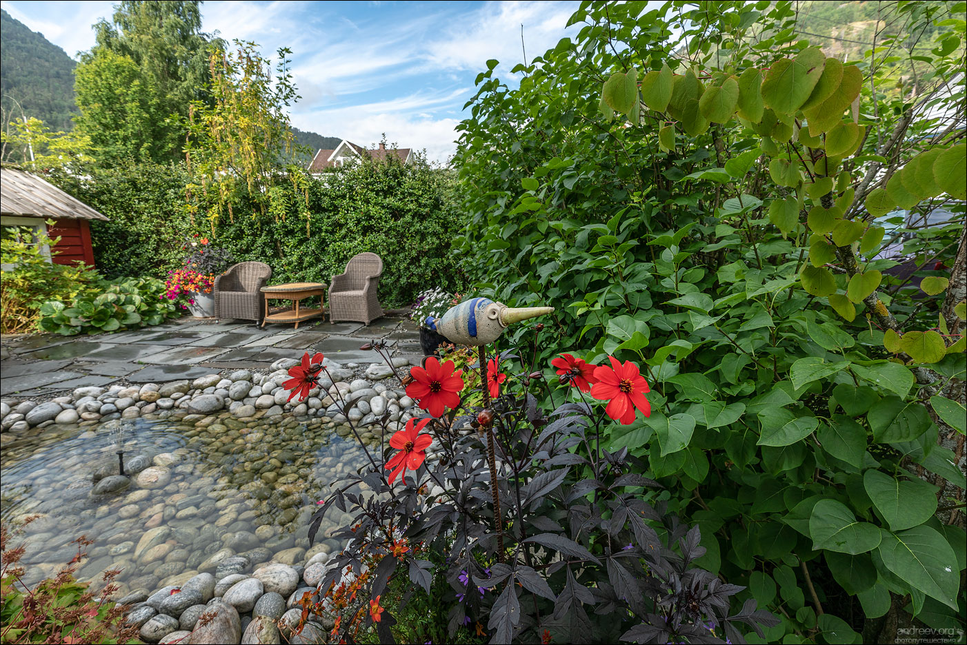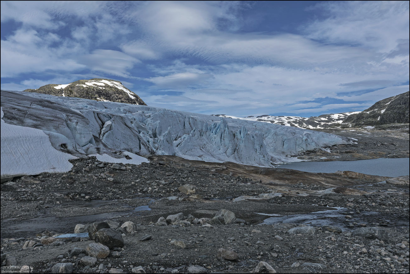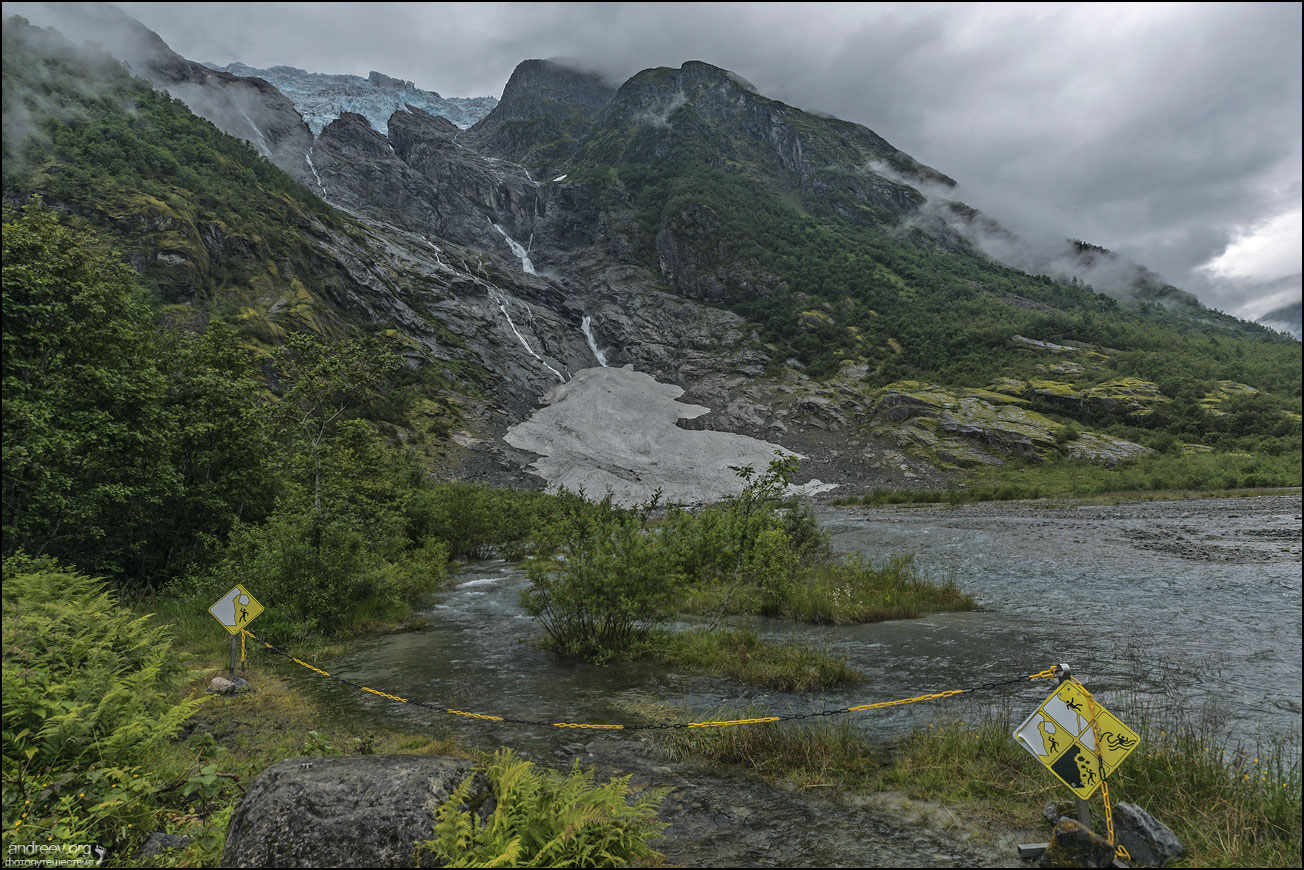 Фотографии из Национального парка Юстедалсбреен: каякинг по ледниковому озеру Styggevatnet с последующим подъёмом на ледник в “кошках”, бирюзовое озеро Lovatnet, и цветочный оазис в деревне Solvorn.