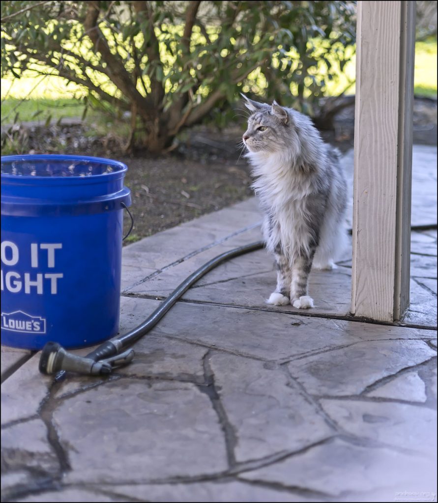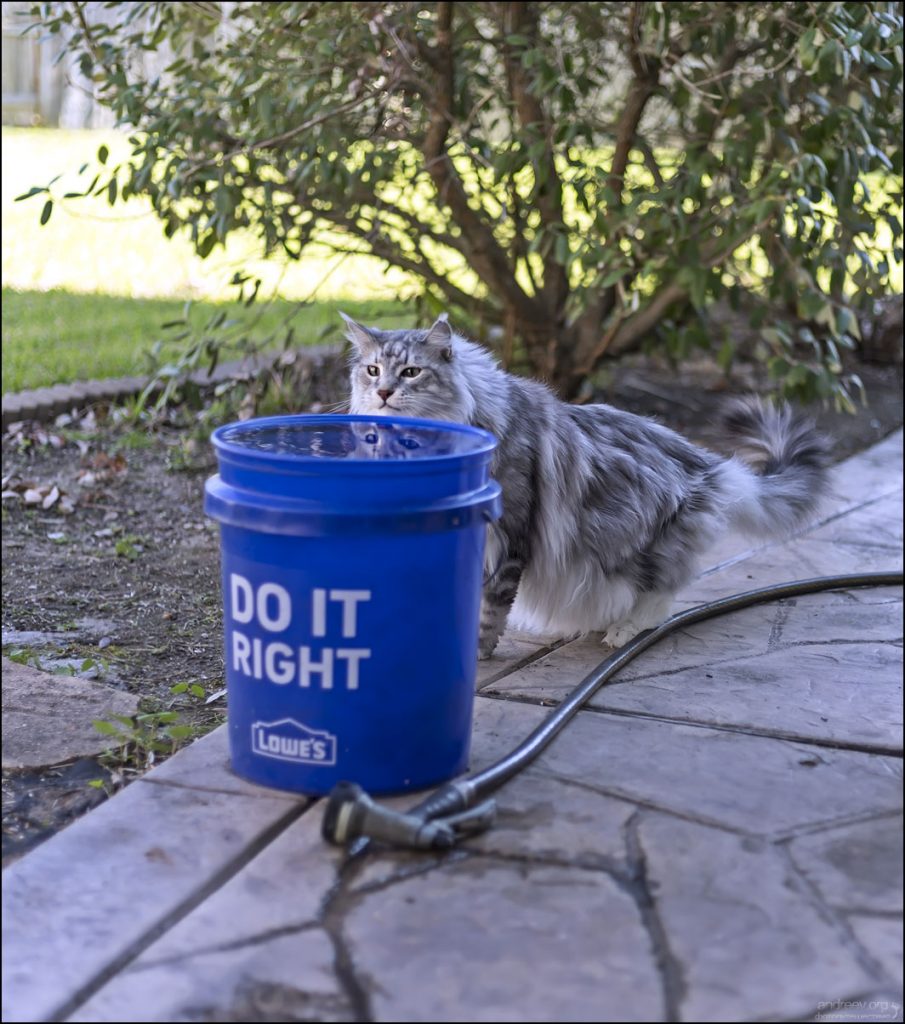 Финдус обнаружил новый предмет во дворе – ведро с водой: