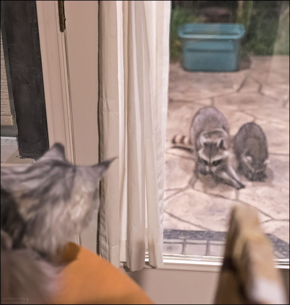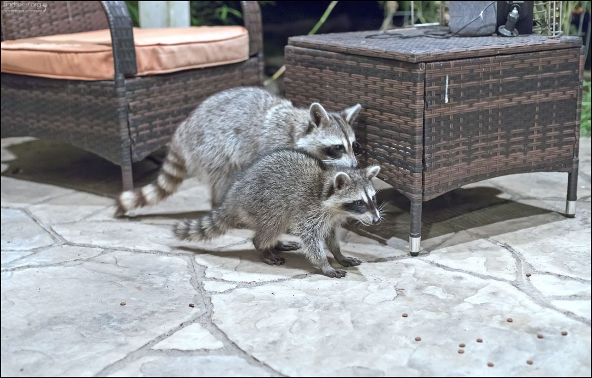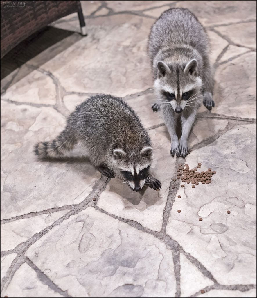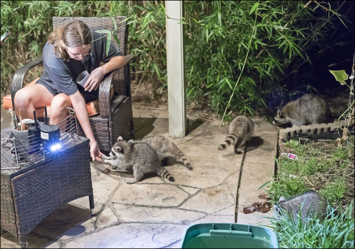 По нашим подсчетам, за вечер-ночь к дому приходит около 18 енотов: