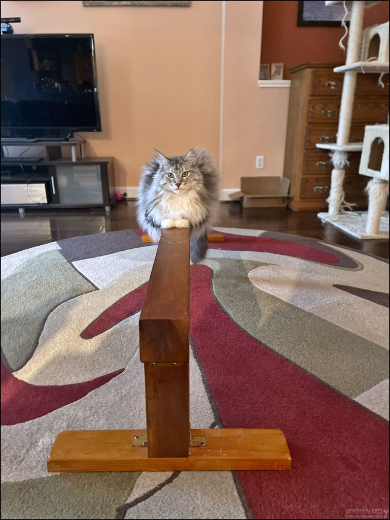 Финя следит за здоровьем – занимается гимнастикой на бревне: