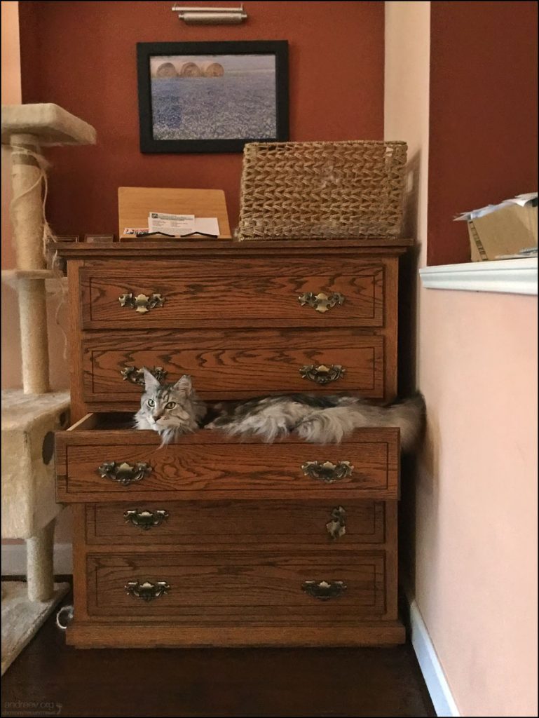 Ящик в комоде – это практически та же коробка. А коробок без котов не бывает.