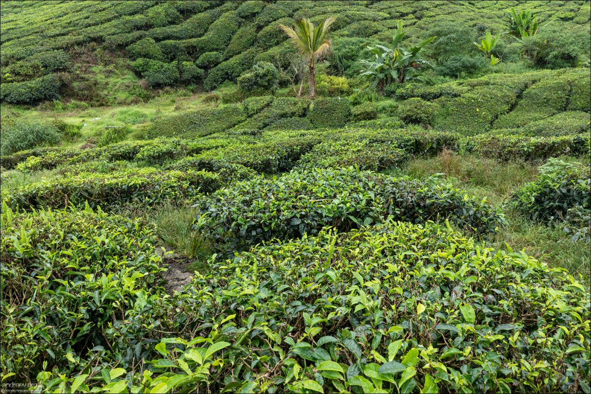 Чайные поля появляются постепенно — сначала просто холмы, потом аккуратные ряды кустов, как будто кто-то прочесал склон огромной расческой с редкими зубьями. Чем дальше, тем плотнее этот зеленый узор.