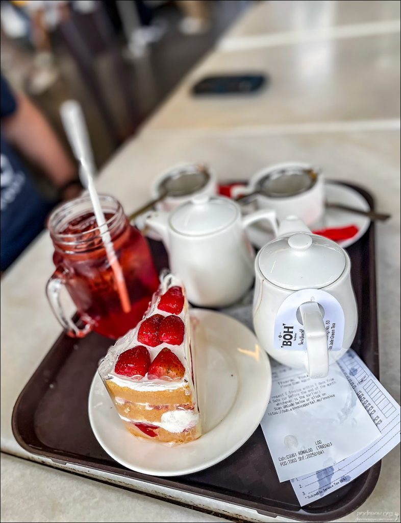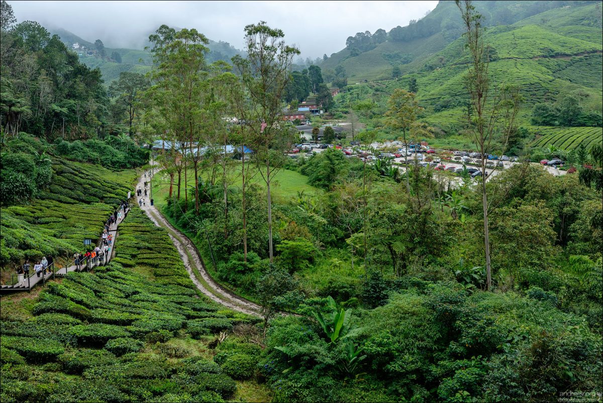 Средняя температура держится в районе 15–24°C — по малайским меркам почти «осень». Помимо чая, регион славится клубникой (невкусная, гидропонная, но выглядит хорошо), овощами и цветами. Частые туманы — не баг, а фича: они создают идеальные условия для чайных кустов.