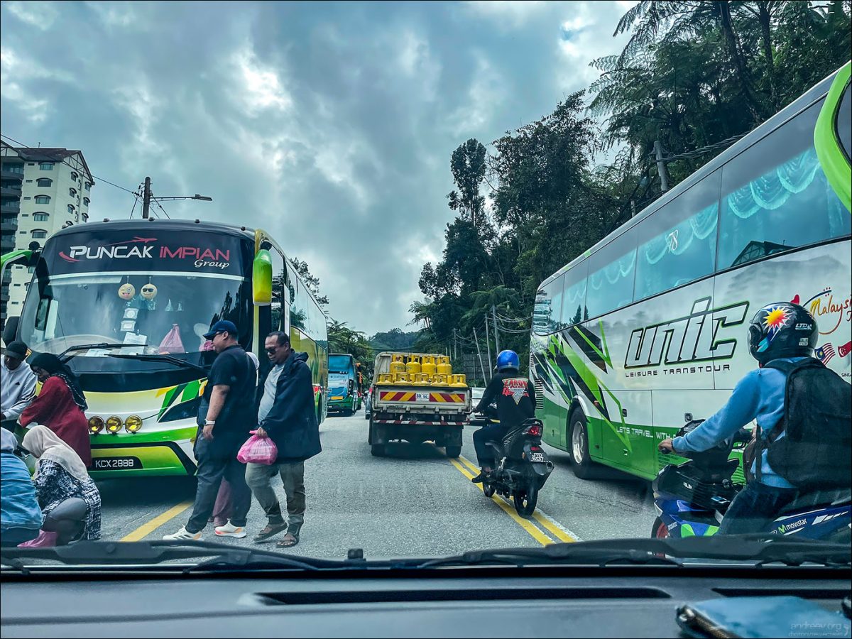 От нашей базы в деревушке Tanah Rata до чайной плантации BOH было всего ничего, около 15–20 км. Но в горах расстояния не работают линейно. С местным плотным трафиком, это не «быстро доехать», а целое путешествие: дорога петляет, поднимается, проваливается в туман и снова выныривает в зеленое море.