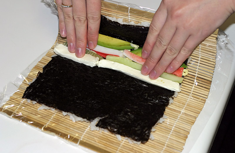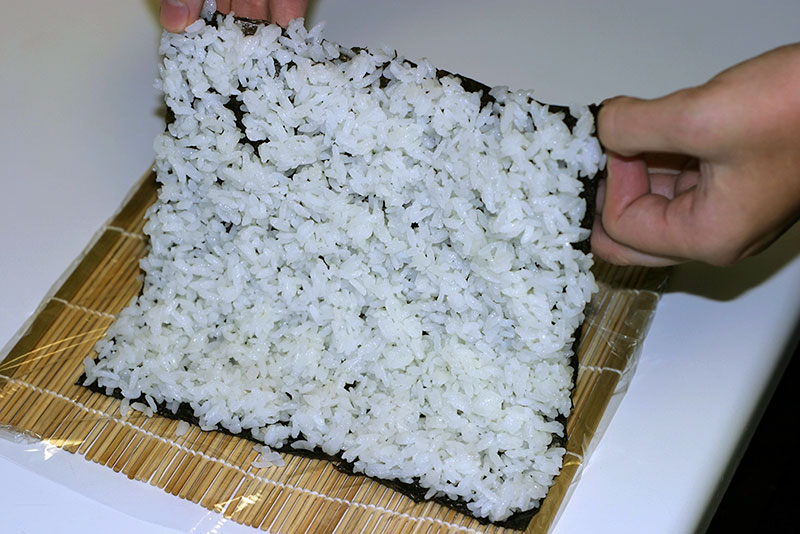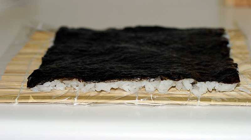 3. Как добиться того, чтобы при изготовлении роллов рисом наружу, в месте стыка нори не просвечивала?