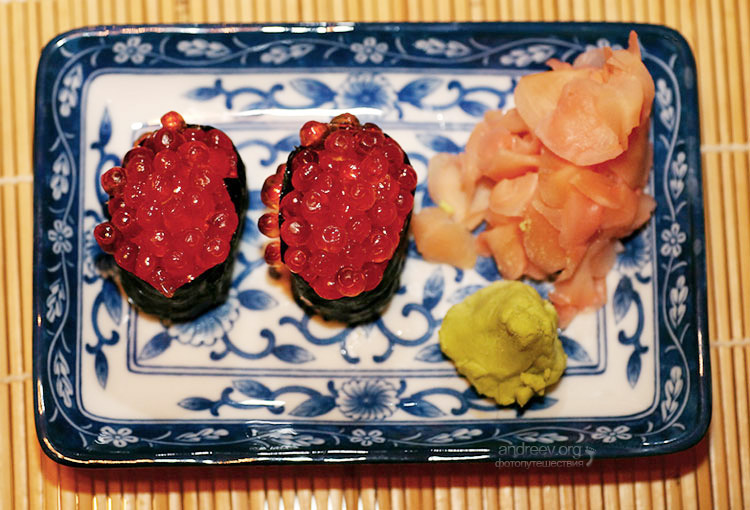 >> Katrin: икра летучей рыбы продается в азиатских супермаркетах, в пластиковых прозрачных банках (на предыдущей странице есть фотографии). А имбирь не нужно мариновать самому, он уже продается маринованным в тех же магазинах.