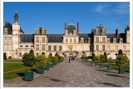 Фонтенбло – город в 60 км к юго-востоку от Парижа, известный в первую очередь великолепным ренессансным дворцом, резиденцией многих правителей Франции. Издалека дворец больше всего напоминает ряд затейливых хрустальных фужеров разной высоты и формы: приземистые пузатенькие пристройки – тяжёлые бокалы для виски, элегантные флигели – сосуды для красного вина, а изящные стройные башенки между ними – легкомысленные фужеры для шампанского. Да и само название города весьма кокетливо: «fontaine bleau» означает «чудесный источник».