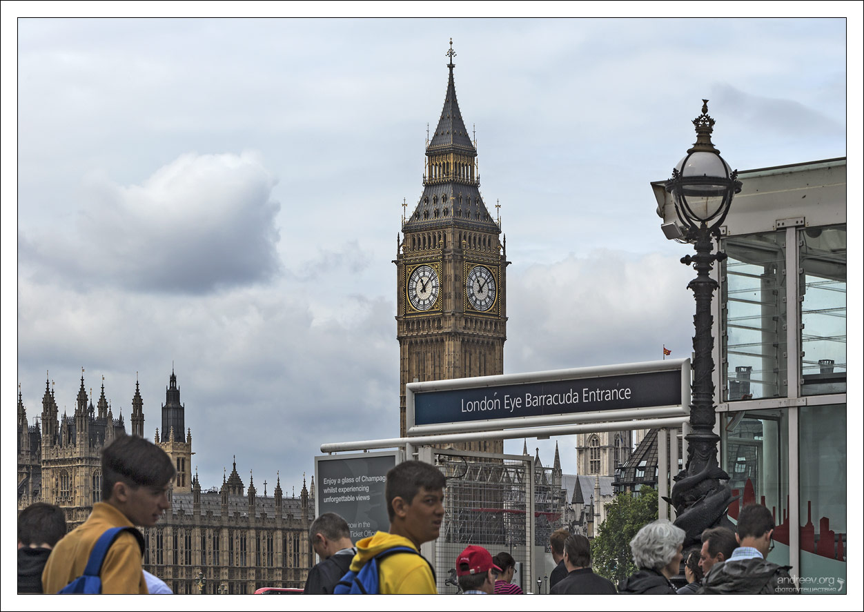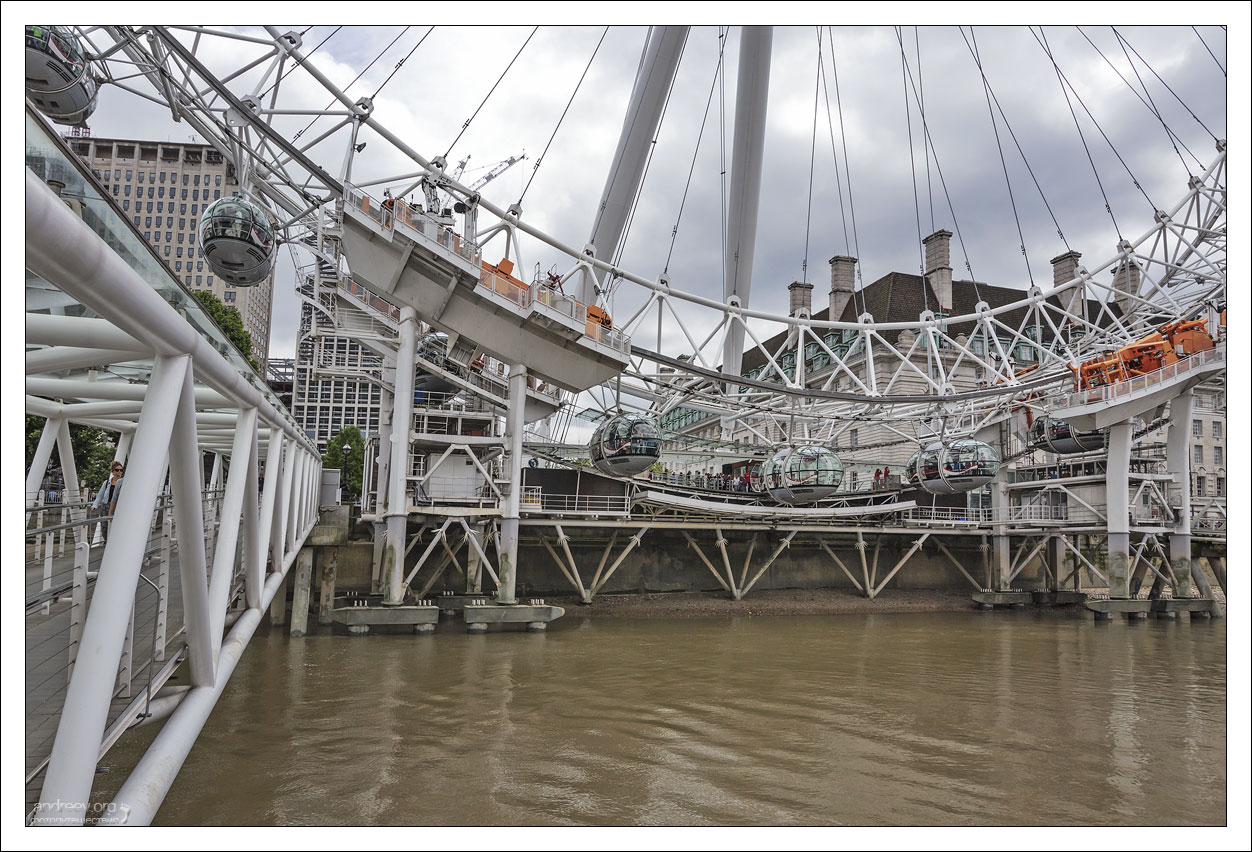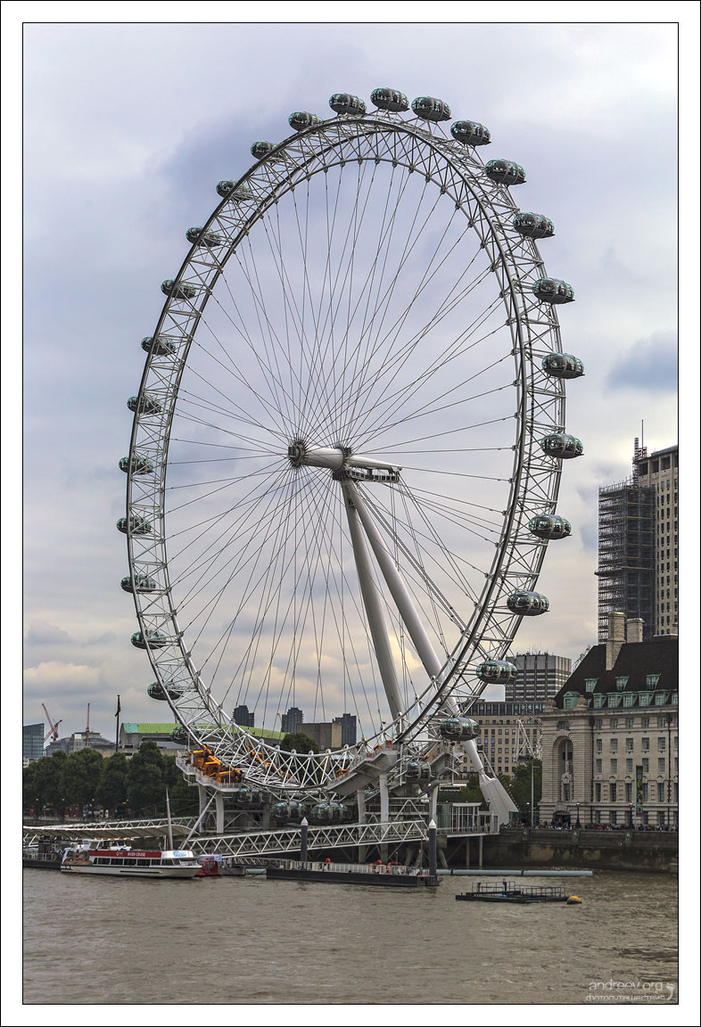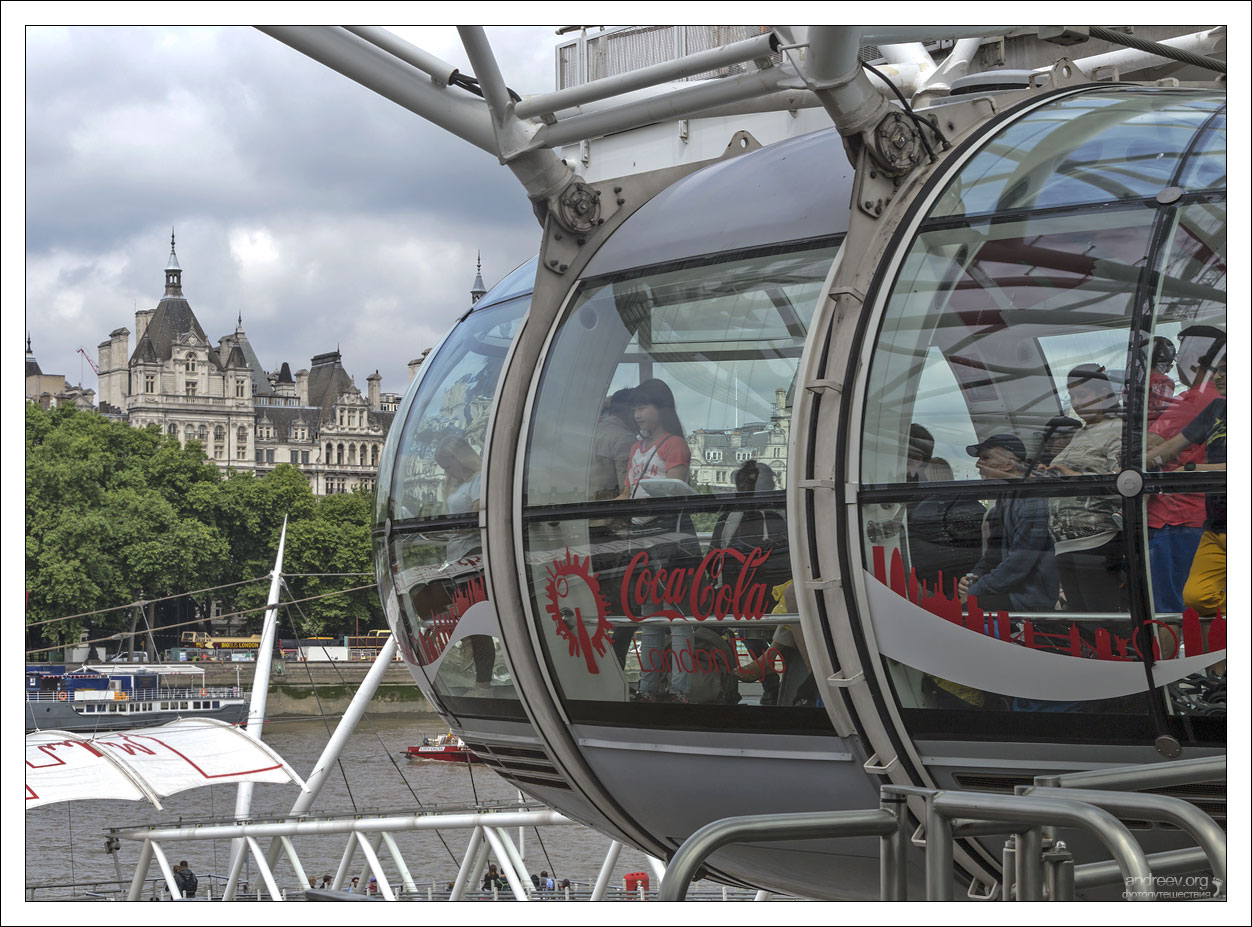 Оказавшись в Лондоне, мы, конечно, не могли пропустить их знаменитое колесо «Лондонский Глаз», или “The Eye”. Построенное на стыке тысячелетий (в этом году отмечает юбилей – 20 лет!), оно по-прежнему является самым высоким в Европе.
