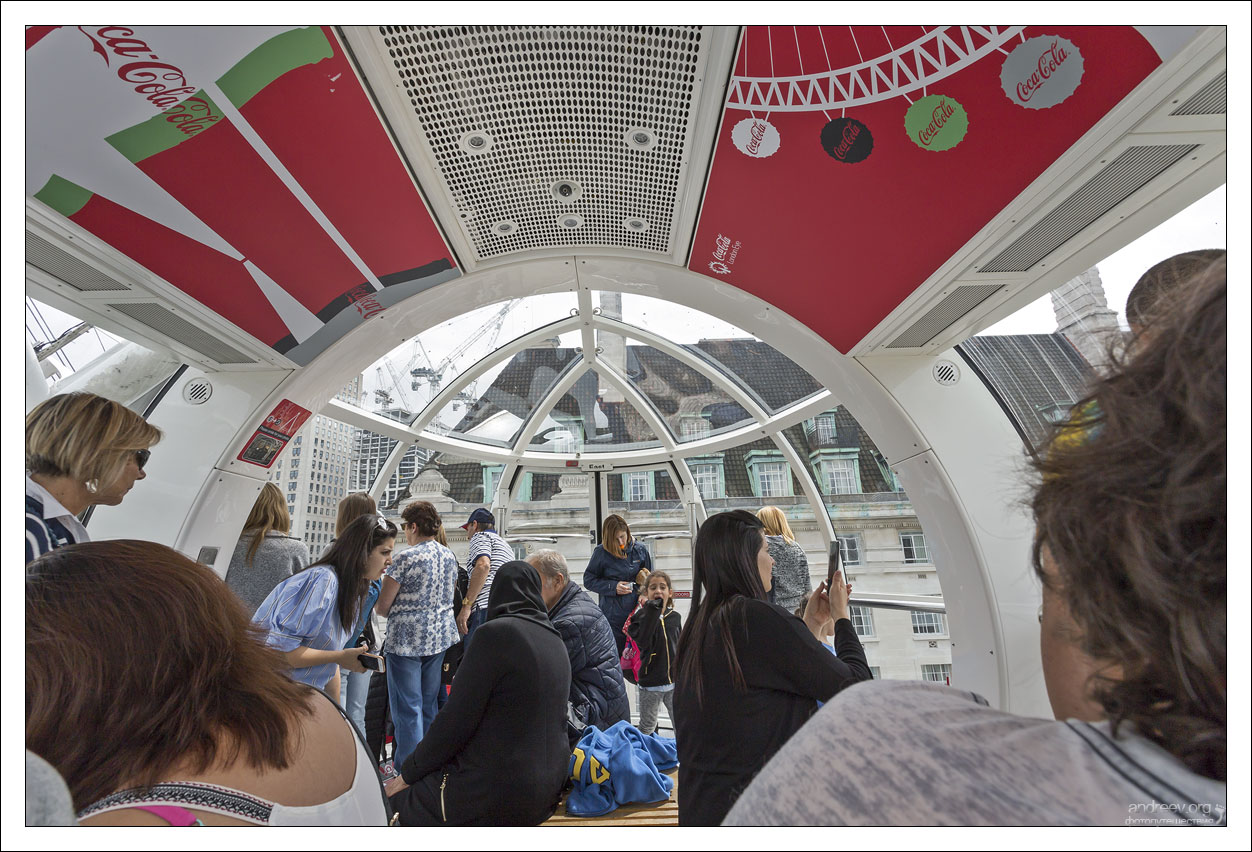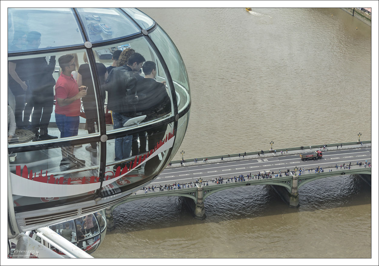В одну капсулу помещается до 25 человек, но под завязку заполняют не всегда. С нами вместе в капсулу зашел… гарем. Во время вращения, их общий муж перефотографировался с каждой из жен по отдельности, а потом стал делать селфи на фоне Вестминстерского дворца и Биг Бена. Гарем в этот момент скромно столпился в уголке.