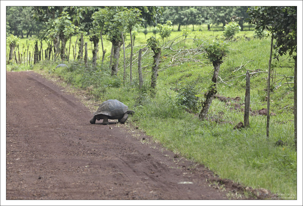 Начать знакомство с животным миром Галапагосов стоит, конечно же, с черепах. Да и само название архипелага как бы намекает, от старо-испанского galápago – черепаха. Сделать это можно двумя способами: на биологической станции им. Дарвина, где черепахи содержатся в открытых вольерах, или на одном из нескольких ранчо в окрестностях Пуэрто-Айоры, где черепахи находятся на вольном выпасе.