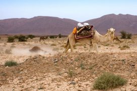 Пару раз дорогу переходили стада верблюдов, разной масти, некоторые с сёдлами. Периодически, они валились на землю, и с таким наслаждением катались в пыли, что хотелось тотчас последовать их примеру. Во главе обычно шёл самый большой верблюд, ведущий своих “подчиненных” только в ему одному ведомом направлении.