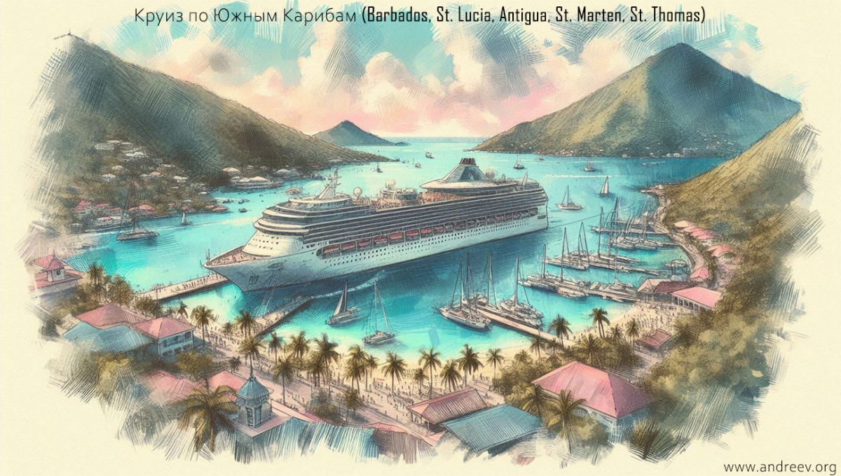 Маршрут: Пуэрто-Рико – в море – Барбадос – Сент-Люсия – Антигуа – Сен-Мартен – Сент-Томас – Пуэрто-Рико.