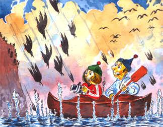 В счастливом неведении мы радостно махали веслами, приближаясь к открытому морю. Рон стабильно держался впереди, и, похоже, намеренно не оборачивался. На горизонте показался Остров Чаек, облепленный птицами. Но путь преграждали таакие волны…
