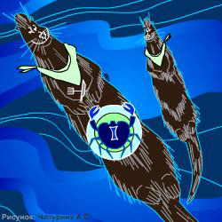 Подруливают каланы хвостом, полностью погруженным в воду, и даже не двигая лапами. Очень интересно наблюдать, как ни с того ни с сего животное отплывает в сторону, не шевеля ни единым мускулом (как кажется со стороны), – работает хвост.