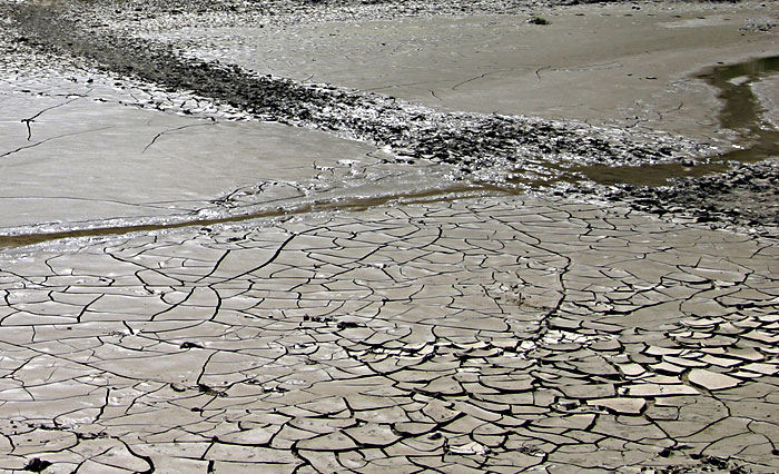 Чтобы добраться до скалы летом, нужно было пересечь вброд приток Рио Гранде – ручеек Terlingua creek. Но весной воды не было, только мягкое грязевое дно в метр толщиной. Сверху грязь слегка подсохла и даже потрескалась, можно было спокойно перейти на другую сторону.