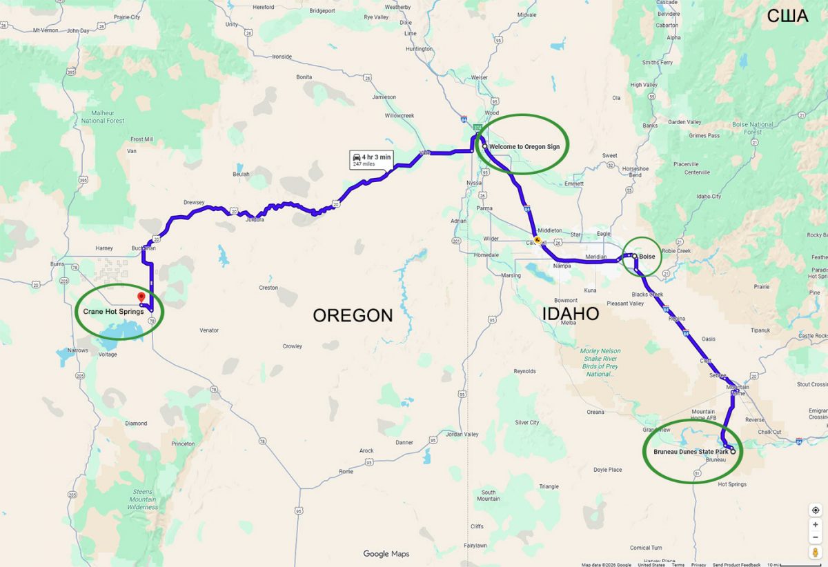 Часть 15-я. Маршрут: катание на доске по дюне Bruneau – Орегонский конфликт – горячие источники Crystal Crane, штат Орегон (in the middle of nowhere).